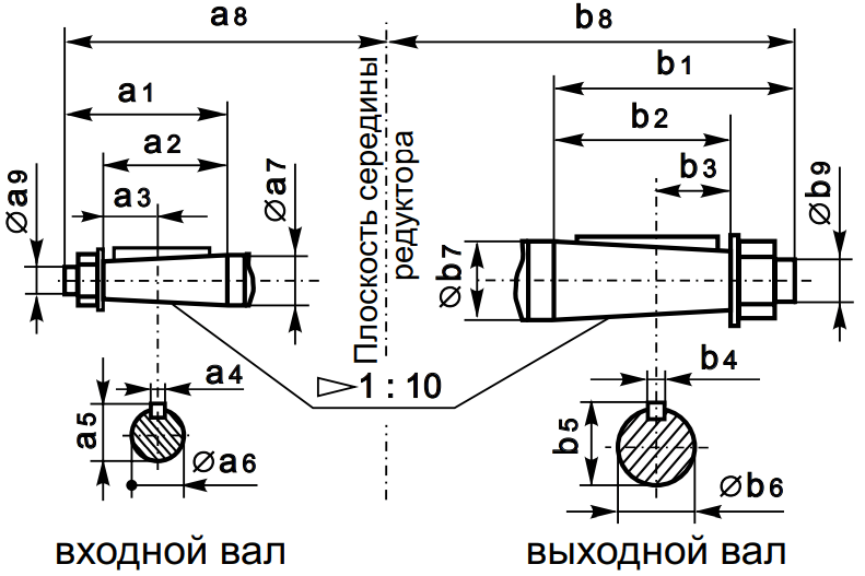 Размеры полного тихоходного вала со шпоночным пазом