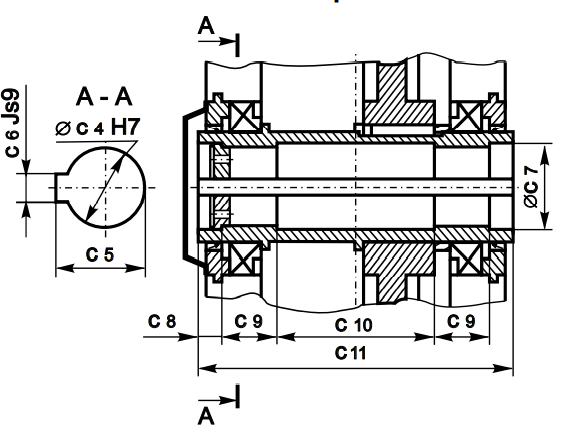 Размеры полого шлицевого тихоходного вала