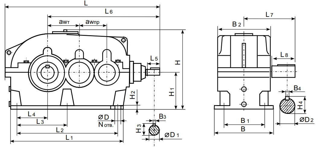 Коническо-цилиндрические редукторы КЦ2-125Н (160Н, 200Н, 250Н)